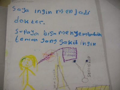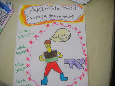 Awalnya mereka menggambar ingin menjadi presiden, pengusaha, dll. Namun, selang beberapa lama mereka menghapus gambar mereka dan mengubahnya menjadi nelayan, tukang galon, buruh, dll.:(